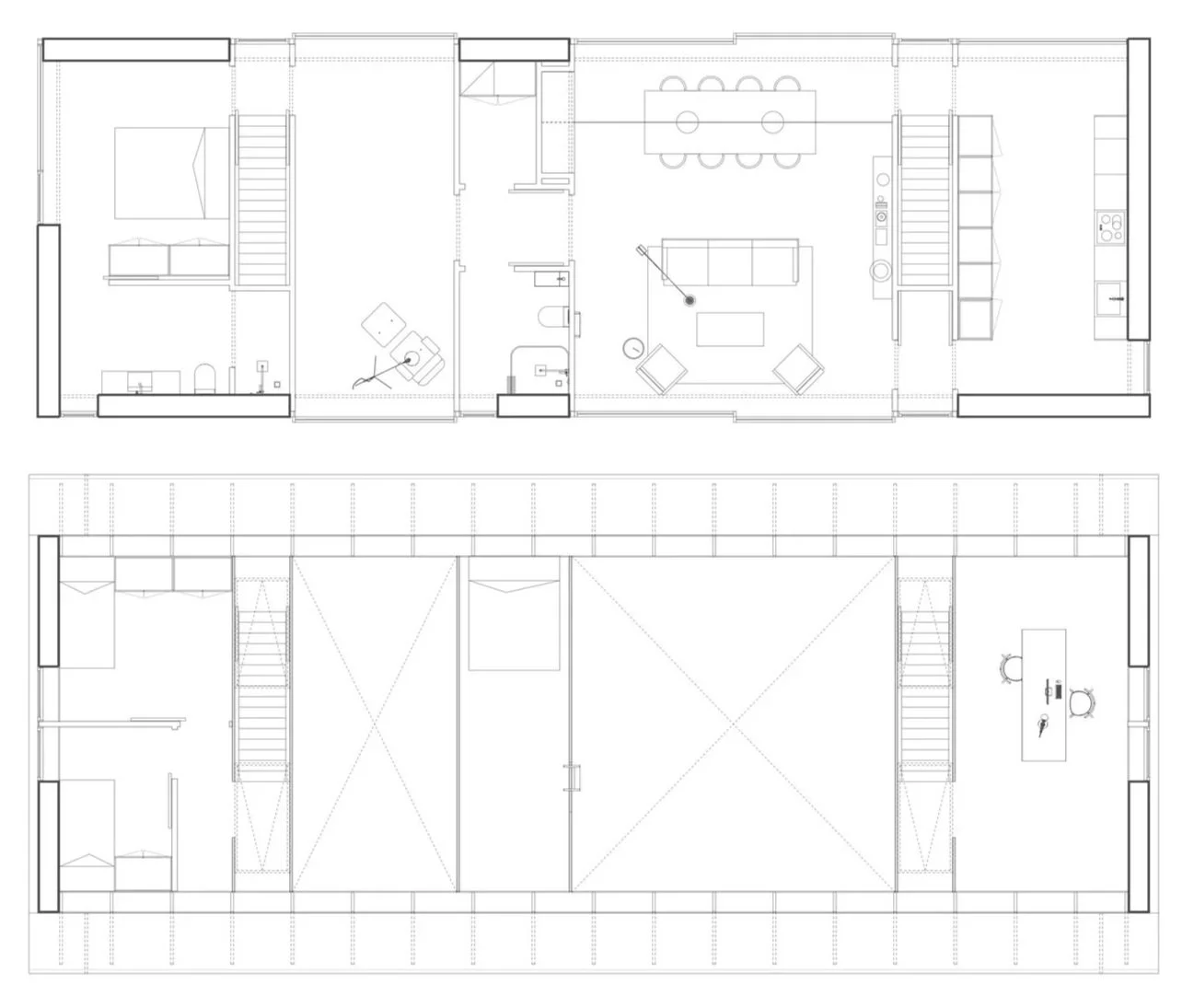 A playful moment sits at the heart of the plan: a raised loft-bed platform tucked into the middle block, reached by a simple ladder. Conceived as a temporary sleepover nook for visiting friends or family, it adds levity and warmth to the home’s disciplined clarity - an affectionate gesture toward how people actually live.